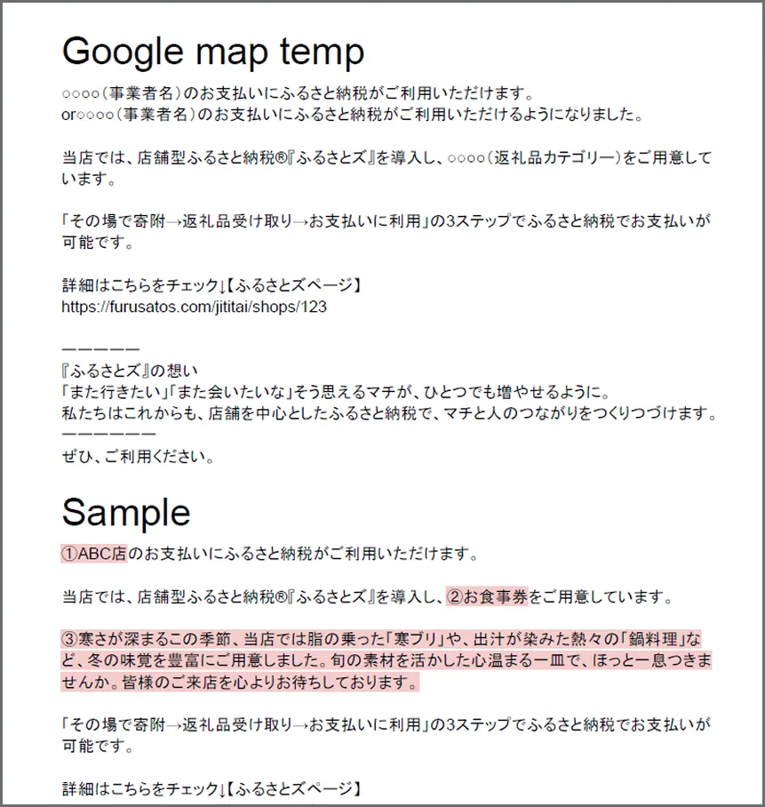 店舗HP案内ページ作成用(雛形文書・画像)