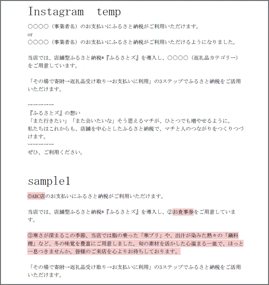 店舗でお持ちのSNSアカウント(Twitter、Instagram、Facebook等)がございましたら、ふるさとズを導入した旨を投稿することをオススメしております。